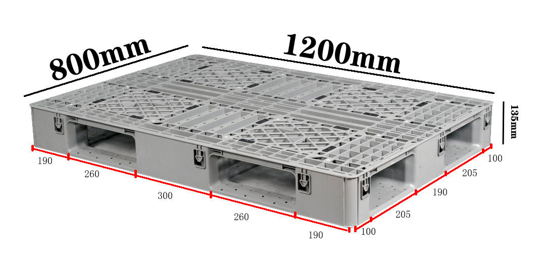 Das Haken-Design der Kunststoffpalette erleichtert die Bündelung von Waren und gewährleistet die Stabilität und Sicherheit des Warentransports.